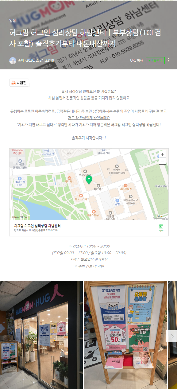 [하남센터] 허그맘 허그인 심리상담 하남센터 / 부부상담(TCI 검사 포함) 솔직 후기부터 내돈내산까지